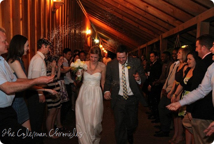 Runaway flower girl! In the middle of the ceremony, while Katie & Eric were taking communion, Hadley decided she wanted to be front & center and took off towards the middle of the stage. Daddy had to come take her back to his seat after that. ;)